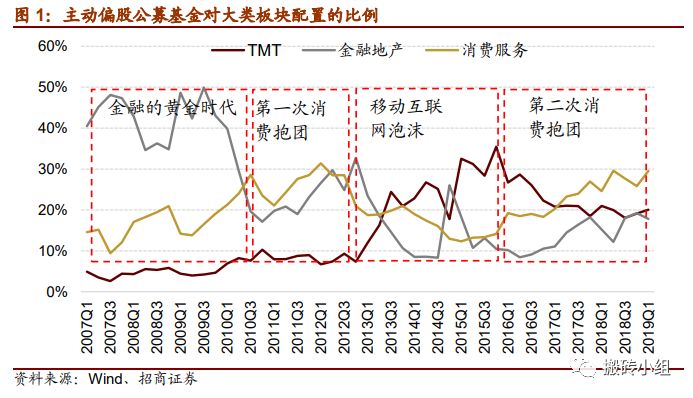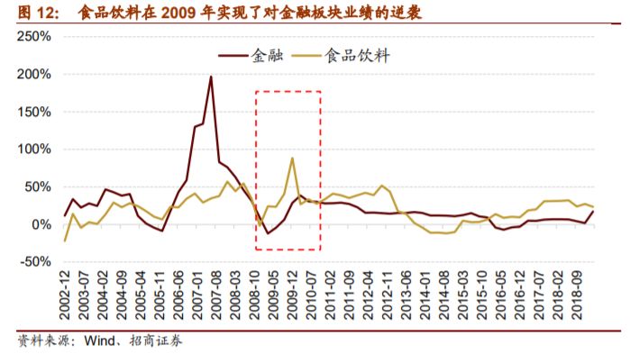 09年,食品饮料全年的业绩增速已经悄悄到了88%,打破了这一板块增速稳定的刻板印象。以白酒为代表的消费板块,既有提价的动力,也有了提价的能力,诞生了巨大的业绩弹性。此消彼长之下,机构投资者纷纷弃金融而投消费。直到2012年白酒行业利空突袭,TMT和各种小票开始大行其道。
