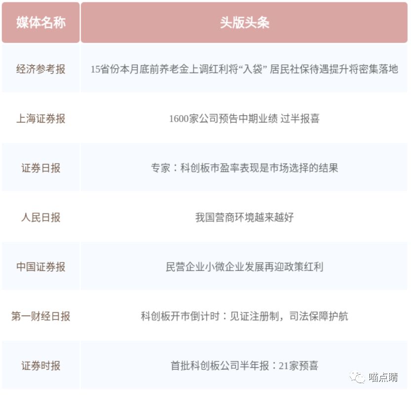 【喵点睛】宏观数据略超预期,半年报预报落下帷幕