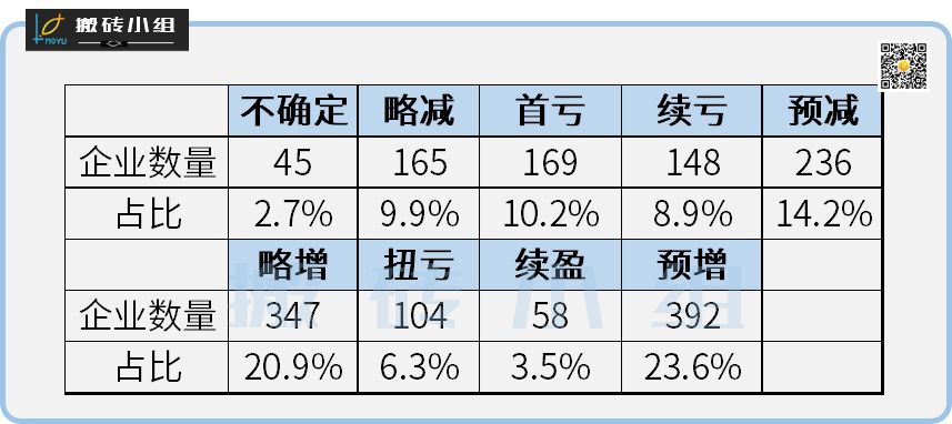 总体来看,截至今天收盘,A股已经发布了1664份中报业绩预报,其中【预减+略减+首亏+续亏】的企业合计有718家,占比接近43%;【预增+略增+扭亏+续盈】的合计有有901份,占比接近54%,在这901份业绩预报中,有875家公司披露具体的业绩变动幅度,而这中间又有471家,预计业绩同比增长30%以上。
