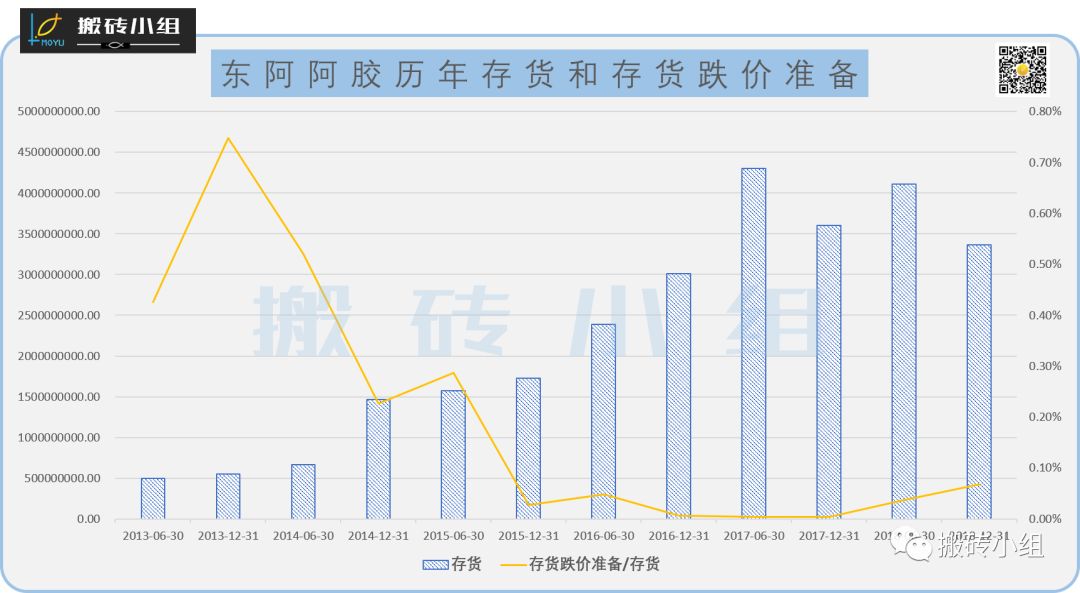 2010年东阿阿胶的存货只有不到2个亿,到2017年已经到了36个亿,翻了17倍还多,但公司的存货跌价准备率却是基于涨价预期做的,连1%都没有,十分平坦。。。老百姓是喜欢囤各种各样的东西,但是囤积的前提是觉得有利可图,要是囤积赚不到钱,整个逻辑要有天翻地覆的变化,放到存货这块,海量存货一旦开始计提跌价准备,就是巨大的伤害。