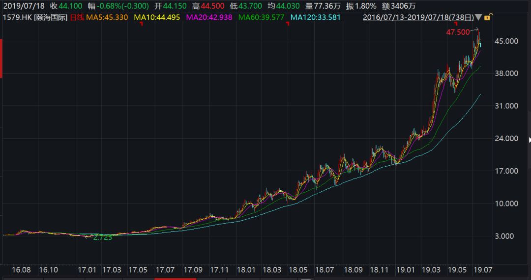 在火锅的产业链上,海底捞是属于下游火锅门店,产业链的上游是原材料与供应链,中游是火锅底料和调味品。相比之下,中游最大的特点是可以标准化生产,通过绑定优秀的火锅品牌,也走出了很多优秀的调味品企业。其中的代表就是海底捞的原材料供应商——颐海国际,它同时也是一个上市三年,股价翻了14倍的超级大牛股。