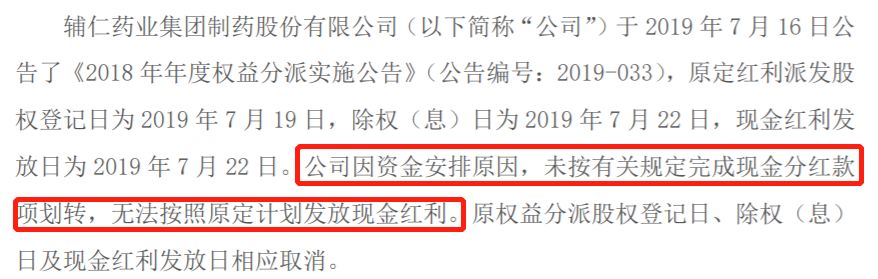 去年挣了9个亿的辅仁药业,上周宣布了分红的公告,一共派息6000多万。结果没过两天,上市公司又突发公告要求停牌,原因竟然是拿不出钱来,为了保护股东的利益,要停牌去筹钱。。