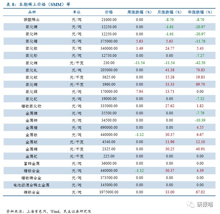 在当前供需格局下氧化镨钕社会库存消耗快,自我调节最到位;中重稀土消耗速度其次,需国家调控。考虑到外部因素利好稀土供给侧改革、稀土本身供需格局改善并存在收储预期,稀土永磁板块跌至历史低估值水平并存在收储预期,可以长期给予一定的关注 。