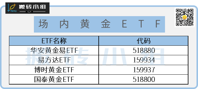 3)本周黄金继续上涨,避险情绪升温,小组之前就整理过黄金的ETF清单,再给大伙贴一下。