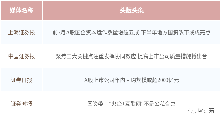 今日四大报焦点有些散乱,小组就着重就投资机会角度和大家扯扯国企改革吧,这条线喵点睛已经跟踪一段时间了,其热度很大,经常上墙我们的热点新闻版块。