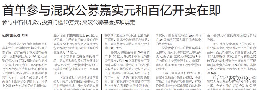 不仅是有史以来第一支投资一级市场的公募基金,还破天荒拿到了中石化混改的入场券,嘉实元和被市场捧上了天。