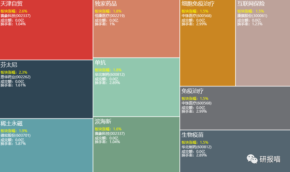 盘面上看,天津自贸、仿制药、芬太尼,稀土永磁等板块涨幅居前。
