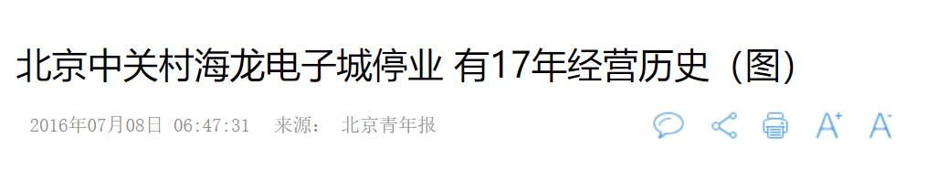 2016年,开业了17年的海龙电子城宣布停止营业,要转型做创业社区,电子大卖场的时代几乎彻底地画上了句号。今天大家只记得京东,已经快要忘了当年的中关村一哥海龙。