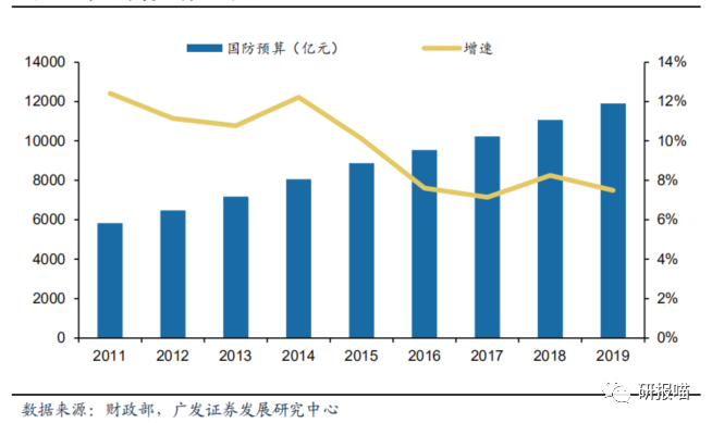 2019年中国国防预算同比增长7.5%,达到1.19万亿元,高于GDP预期增速。从外来看,国际形势日趋复杂,印度、美国等国家均大幅增加军费预算。