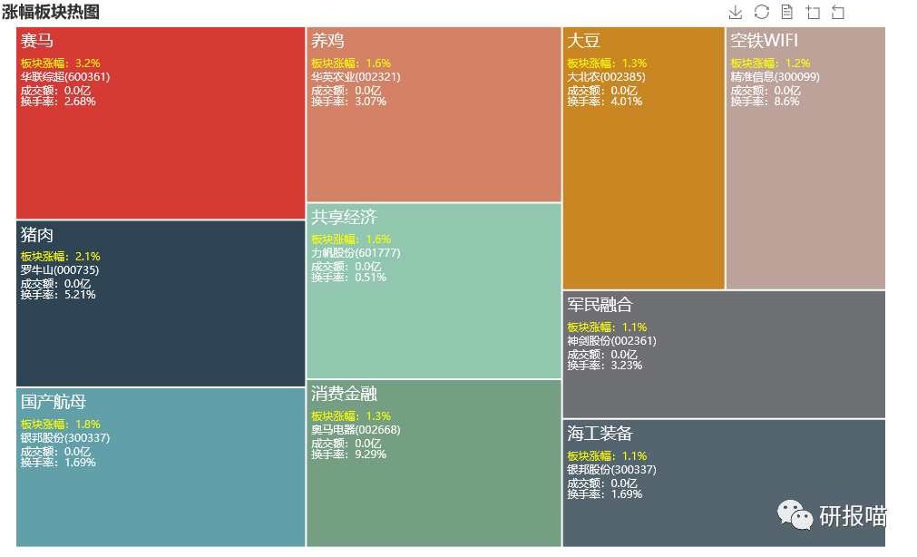盘面上看,赛马、军工、养殖业板块涨幅居前。