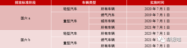 多地提前实施国六排放标准。第六阶段排放标准设置了国六a和国六b两个排放限值方案,为保证汽车行业有足够的准备周期来进行相关车型和动力系统变更升级以及车型开放和生产准备,多个地区相继出台了2019年提前实施国六排放标准的文件。