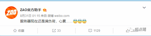 周末陌陌旗下的一款APP“ZAO”爆红网络,简单来说这个软件运用AI技术,只要用户上传自己符合条件的照片就可以替换各种知名影视作品中的主人公,合成一版自己当主角的视频。由于效果逼真,软件一夜爆红,直接干瘫了服务器。。