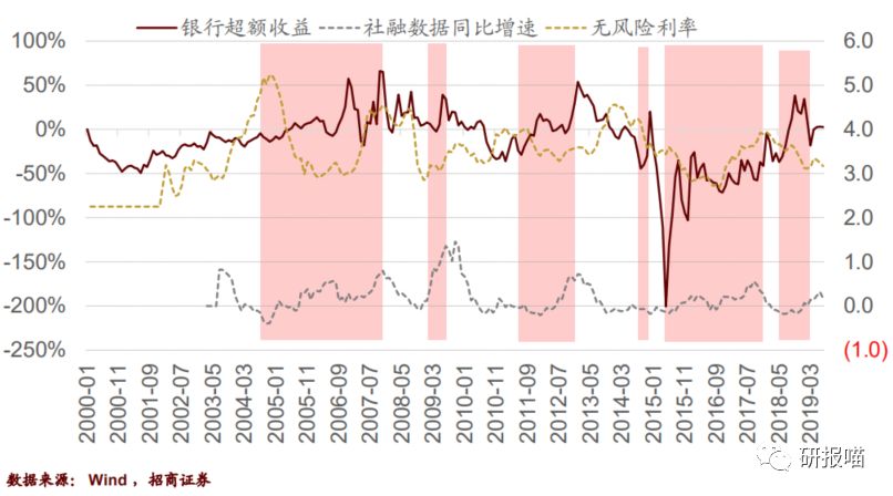 2、银行:银行板块的超额收益来自信用宽松,复盘过去20年,社融增速和银行板块有明显正相关。