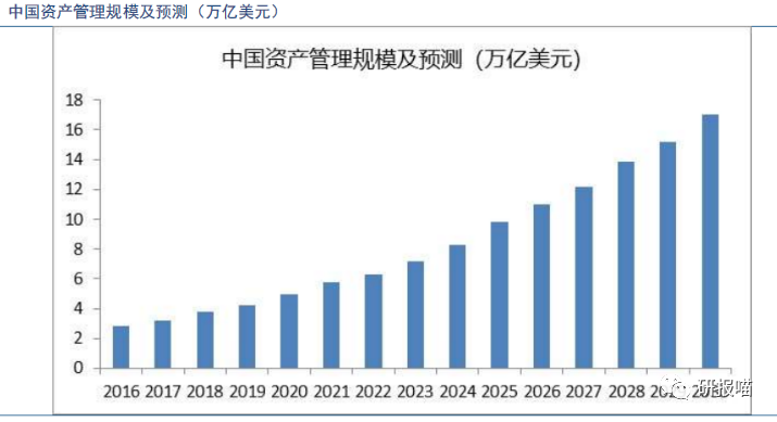 自 2014 年 ,我国资管规模年均复合增速达 31.23%,据数据显示,中国资产管理总规模有望在 2030 年达到 17 万亿美元。大资管发展,资本市场持续开发以及政策环境形成利好。