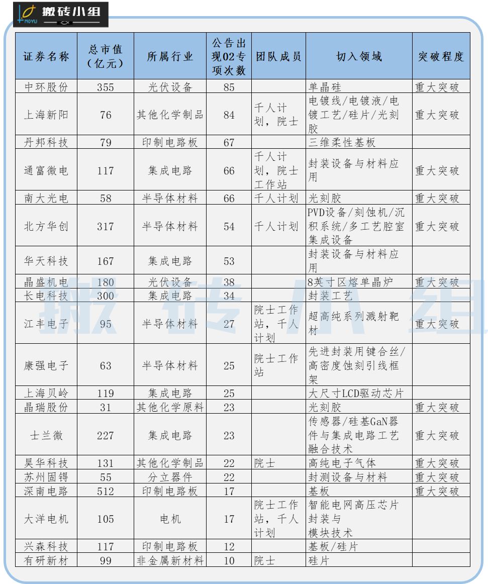 小组之前给大伙说过02专项的相关名单,除了安集科技因为在科创板上市没算在里面之外,都在这里啦。“在看”过了4K,今天放出来,供大伙参考:????