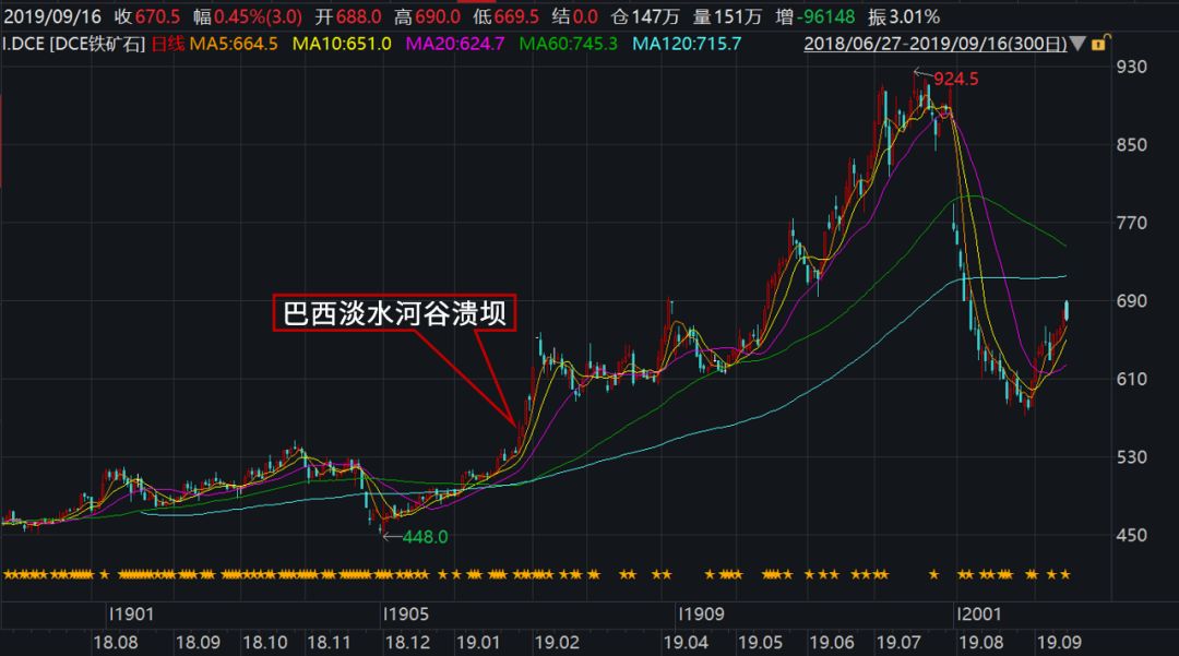 当时,国际著名的机构穆迪还站出来说,淡水河谷溃坝事故影响有限,因事故发生的矿区铁矿石产量占比少于2%。结果就是这不到2%的供给缺口,使得铁矿石的几乎翻了一倍!
