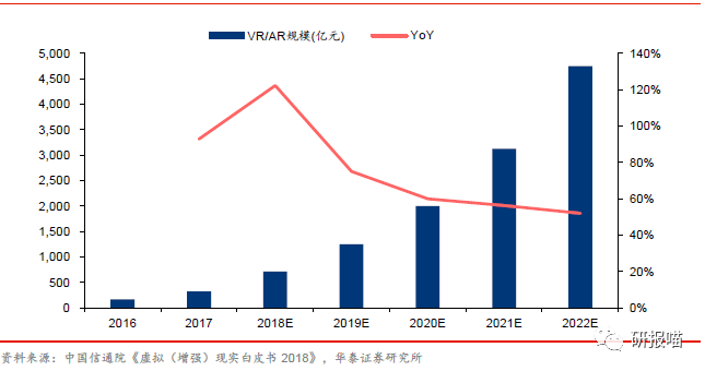 中国信通院预计VR产业将在未来几年达到70%的复合增长率,相关产业链机会值得重视。