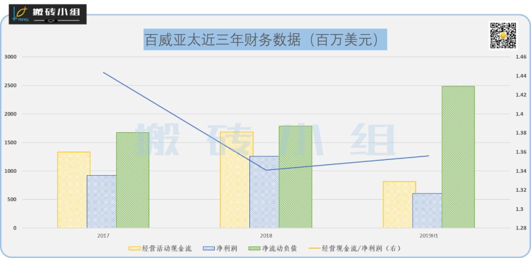 从财务上看,百威亚太近几年的营收和净利润基本保持稳步增长,但经营现金流/净利润的比值在只有1.4左右,在啤酒大行业里算不上好。比较值得关注的是公司的债务情况——中报上近25个亿美金的净流动负债,现金流上的压力很大。
