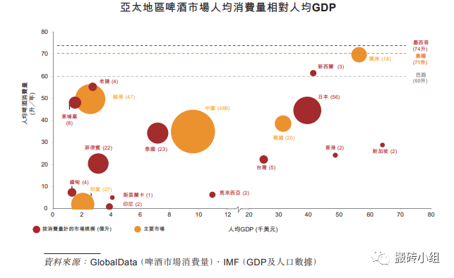 综合来看,因为饮食习惯等方面的因素,欧美地区和大多发达国家的啤酒市场已经基本饱和,市场格局相当稳固。而亚太地区人口众多,是重要的新兴市场,目前不仅是全球最大的啤酒消费市场,也是全球啤酒消费增速最快的地区之一。
