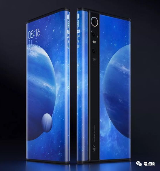 另一款就比较炸了,小米 MIX Alpha,MIX代表探索,alpha代表颠覆。机身全环绕式屏幕,无任何按键,侧面也可交互。像素达到1亿。。边框用的钛合金。。当然,价格也很炸,19999元,堪称史上最奢侈的小米。。