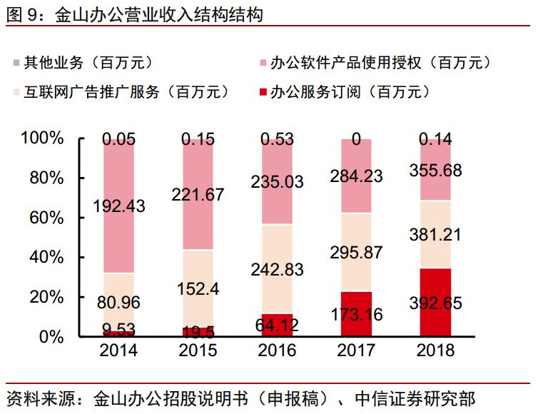 2018年金山办公收入为11.3亿,盈利为3.11亿元,横向来看,三驾马车在收入的贡献上齐头并进,其中订阅服务增长最迅速。