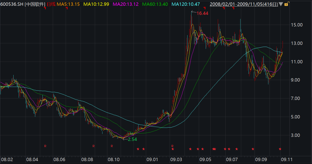 当时的龙头是中国软件,股价在短短的5个月的时间里大涨了将近550%。除了中国软件之外,用友网络、同方股份和恒生电子等核心标的都在后来的炒作中,成为了一只只大牛股。市场对于核高基给予了充分的溢价,尽管后来跌回去不少,基本面没有根本性的改变,但是市场确实出现了远超预期的巨大波动,这也算是大A的一个特色。