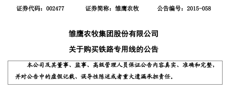 人一有钱就会膨胀,雏鹰农牧融到钱之后就开启了买买买的模式,从电子竞技、电子商务到银行金融,再到什么“沙县小吃易传媒文化公司”,全都收入囊中,在2015年时,甚至还花钱买了一条铁路专用线路。