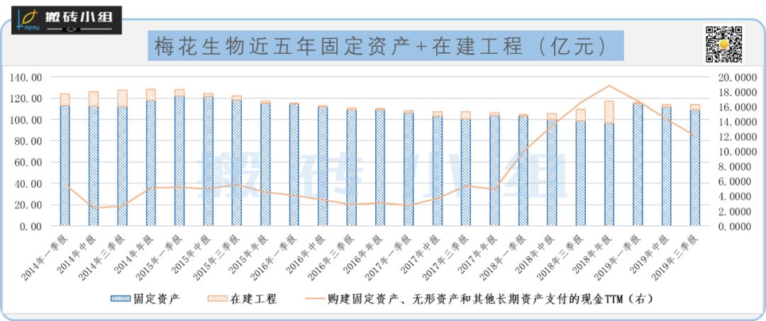 资产方面,这几年公司因为看好所在行业的发展,搞起了扩大再生产,上马了不少新项目建设,尤其是吉林白城的基地,建成之后的产能是公司当前赖氨酸产能的一倍还多。反映到公司的报表上,就是去年的在建工程科目迅速扩张,大把的现金流投入其中,引起了交易所的关注。