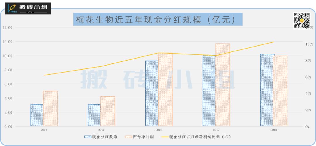 到了去年,归母净利润只有10个亿的梅花生物,拟分红的金额居然达到了10.25个亿。把当期的净利润都分完不算,还要从公司的账上拿钱分给股东,这种慷慨真的是让人感动。。