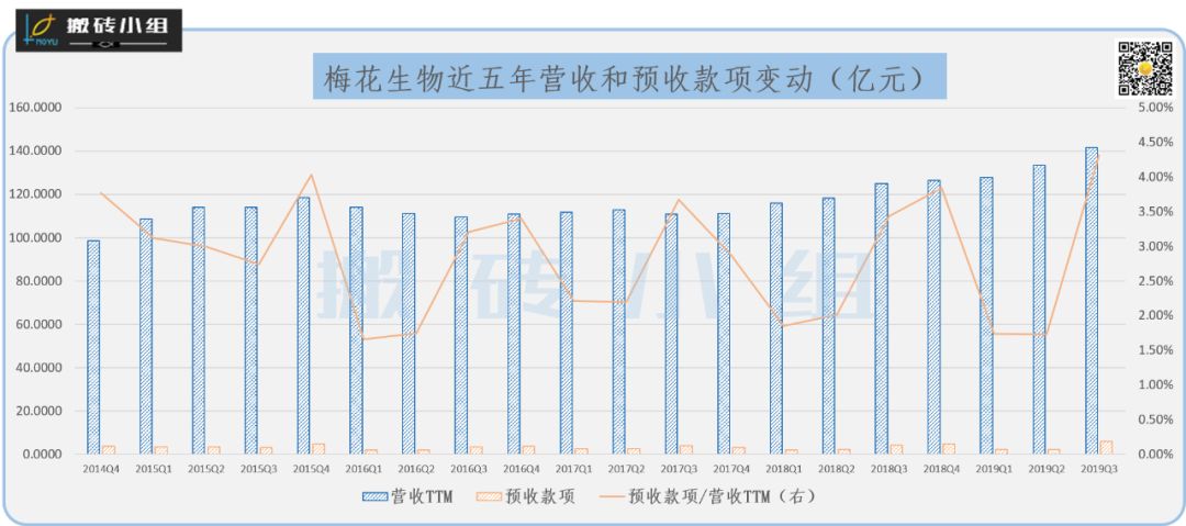 小组仔细拉了一下表,三季度公司TTM营收140多亿的规模,预收款项是这么多年最高的水平,但也只有6个亿,预收款项营收占比连5%都不到,对公司营收的影响其实很小。。
