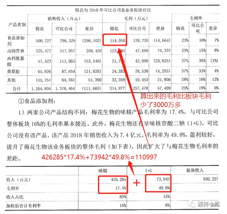 能够看出,I+G这种产品的毛利率确实要高出不少。可尴尬的问题在于,用两种产品的收入乘以各自的毛利率算出的毛利,最后居然和板块整体的毛利有3000万多的差异。这是什么奇妙的化学反应?