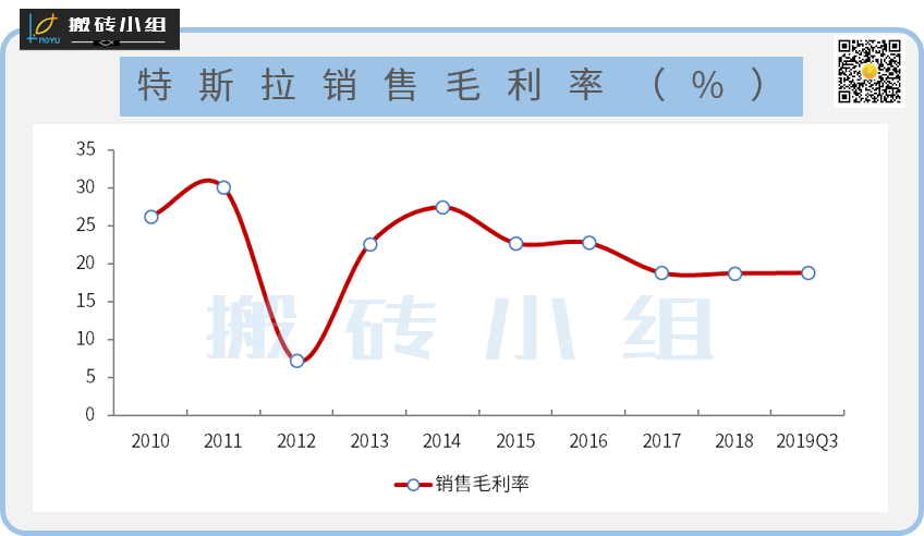 特斯拉产品的销售毛利率在上市之初就达到了20%以上,最高时的2011年甚至突破了30%,后来毛利率随着产品结构调整有所变化,特斯拉最初的车型是超豪华的电动超跑,而后从ModelS/X到Model3,产品定位逐渐向中高端大众化靠拢。