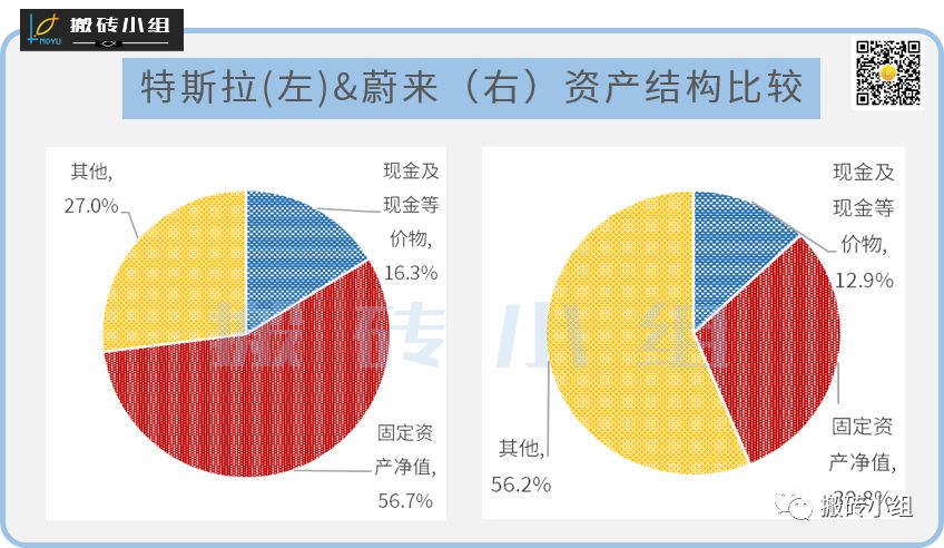 特斯拉目前拥有总资产2319.56亿元,资产负债率为77%;资产中,现金及现金等价物为377.55亿元,占比16.3%;固定资产1316.34亿元,占比56.8%。蔚来总资产182亿元,资产负债率达到了97.5%;资产中,现金及现金等价物为23.5亿元,占比12.9%;固定资产56.1亿元,占比31%。
