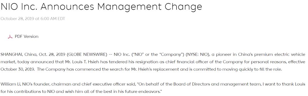 最近有个关于蔚来的新闻,蔚来的首席财务官(CFO)——谢东萤先生即将从蔚来离职,有人开玩笑说,这代表蔚来的财务状况已经好的不需要CFO来操心了。吃瓜群众对这个新闻可能就是一笑而过,但是在小组眼里,这件事情反应了很多重要的信息。