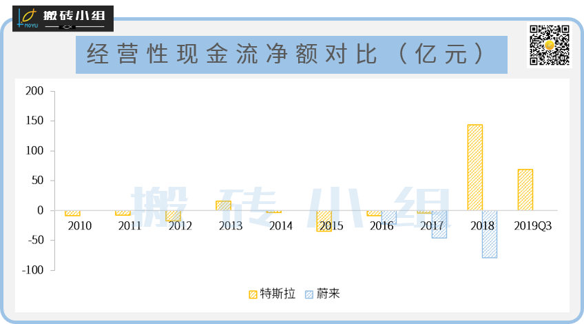 现金流方面,特斯拉的经营性现金流净额在水下徘徊多年后,终于在2018年大幅转正,而蔚来的经营性现金流净额只是在水下越潜越深了,按照蔚来的烧钱速度和现金储备,留给它的时间不多了。