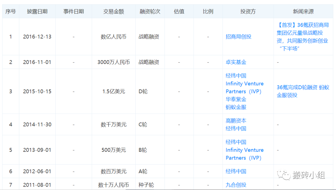 36氪的成立与发展,赶上了国内互联网发展的红利,这一点,从36氪集团的融资中就能看出来,其先后拿到了经纬中国、蚂蚁金服、华泰紫金、招商局创投等机构的投资,一路顺风顺水。在2017年时,国内90%早期项目首次曝光都是在36氪平台上完成,那时的36氪拥有着巨大的竞争优势。