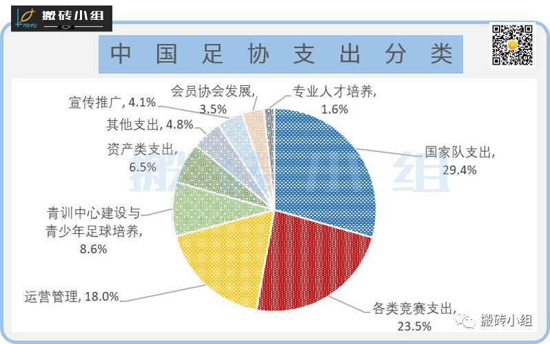 我们翻了一下中国足协的财务报告,中国足协2018年收入8.4亿元,成本费用8.1亿元,固定资产投资支出0.6亿元,其中直接花在球队身上的钱只有2.55亿元,包括教练支出,国家队和青训队的集训和比赛支出,占总投入的比例只有29.4%。