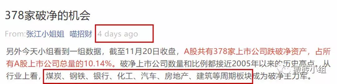 小组上周四在喵招财上刚聊过《378家破净的机会》,而今天很多破净股的表现十分抢眼,涨幅排名靠前的这些行业基本都是破净股扎堆的行业。