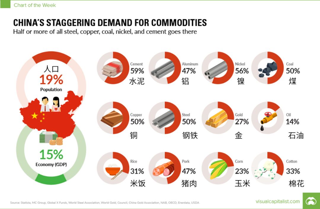 小组最近刚好看到一张国内大宗商品消费的数据图,跟我们的生活联系起来会发现许多有趣的地方,刚好今天跟大伙多扯两句,话不多说,先上图????