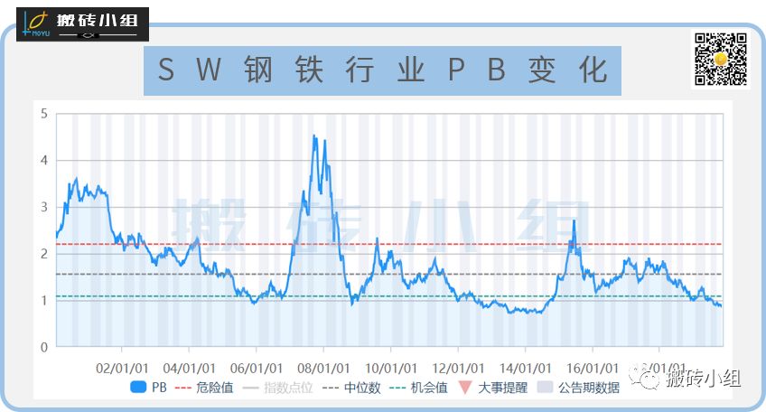 以今天涨幅最大的钢铁行业为例,其PB目前为0.92,过去20年的估值分位为10%,也就是说钢铁行业目前的市净率比过去20年里90%的时间都要便宜;而其PE估值为9.66,也比过去20年里80%的时间都要便宜。