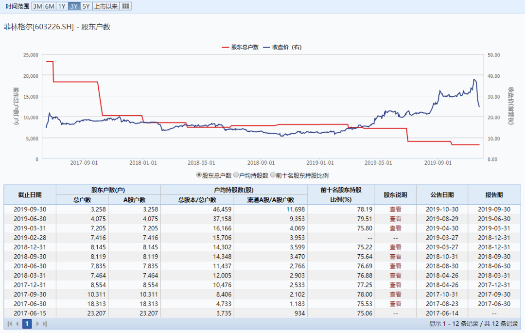市场上有一个常用的逻辑,去找股东户数减少的公司买入。一般认为股东户数减少说明有人在吸筹,后面股价上涨的概率会比较高。但如果减少到极致了,那么就要注意一下庄股崩盘的风险,最近菲林格尔的崩盘就是这种。