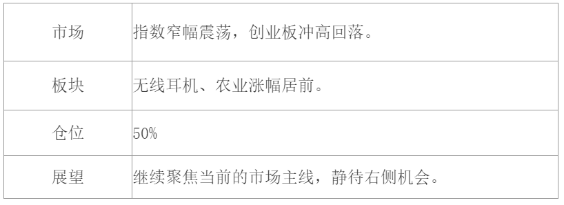 最后仓位上,由于最近指数一直没有看到有效的多头进攻,创业板横盘3天没有站回60日线上,这里小组减仓10%,继续聚焦仓位做当前的结构性行情,静待右侧机会的出现。