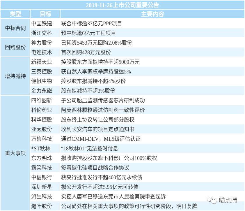 2、永兴材料:公司实际控制人拟将其持有7.12%的公司股份转让给久立特材,转让后,公司实际控制权未发生变更,久立特材持股比例将增至10%。