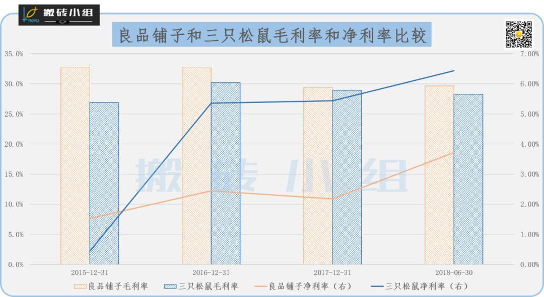但到了净利率上面,良品铺子因为有大量线下店铺的原因,导致了高昂的人力成本,而三只松鼠主打线上运营,没有这样的烦恼,净利率反而更高????:
