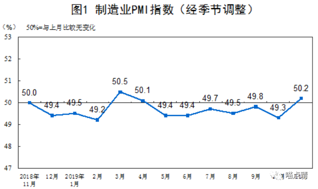 2、周末,统计局公布了11月的PMI数据,结果为50.2%,比环比大幅上升0.9个百分点,时隔半年重回荣枯线上方,大大超出市场预期。