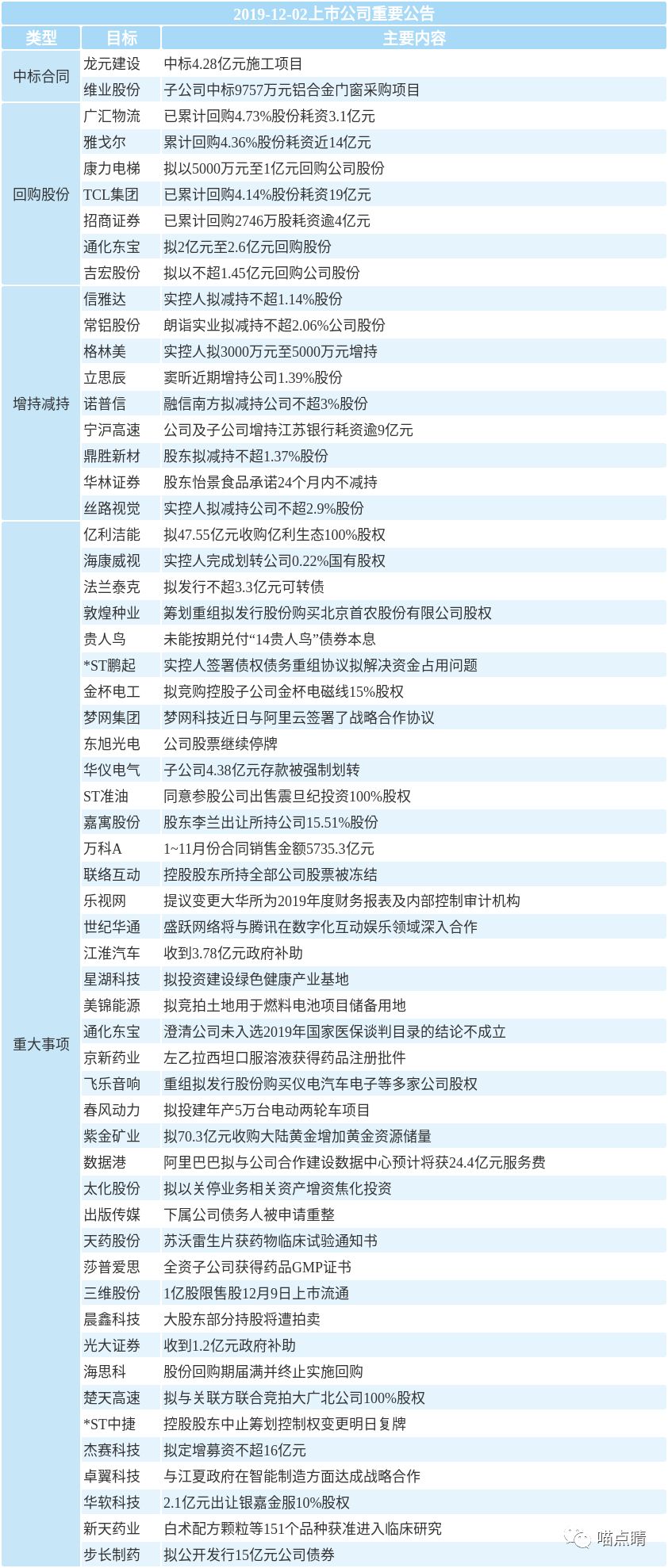 2、格力电器:公司控股股东格力集团向高瓴旗下的珠海明骏转让15%的公司股份,转让价46.17元每股,合计转让价款为416.62亿元。