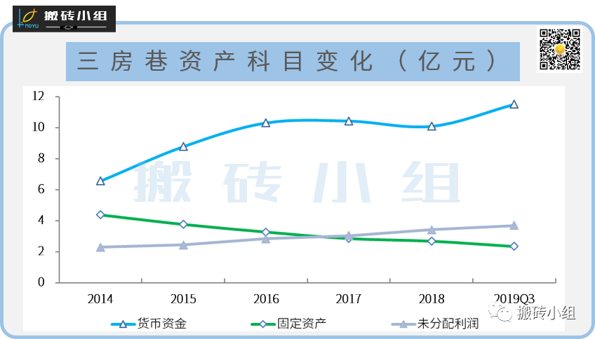 货币资金从2014年初至2018年底累计增加了4.35亿,同时固定资产持续减少,另一边未分配利润持续增加。