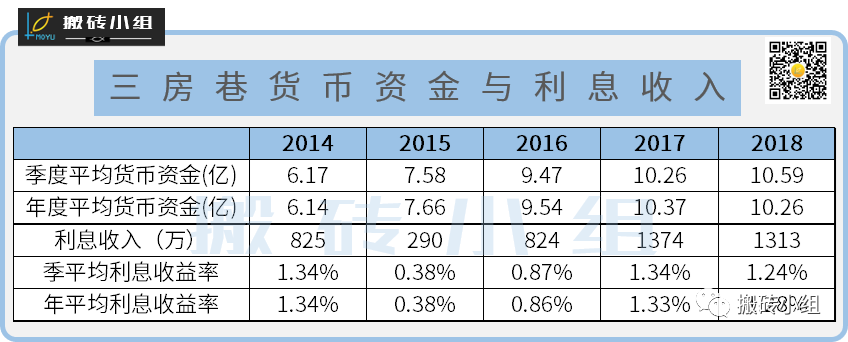一个常用的检验办法就是看看现金对应的利息收入是否合理。结果一看,三房巷的利息收益率大部分时候只有1%出头,2015年甚至只有0.38%,前几年就算把钱存余额宝也不止这么点收益。。。