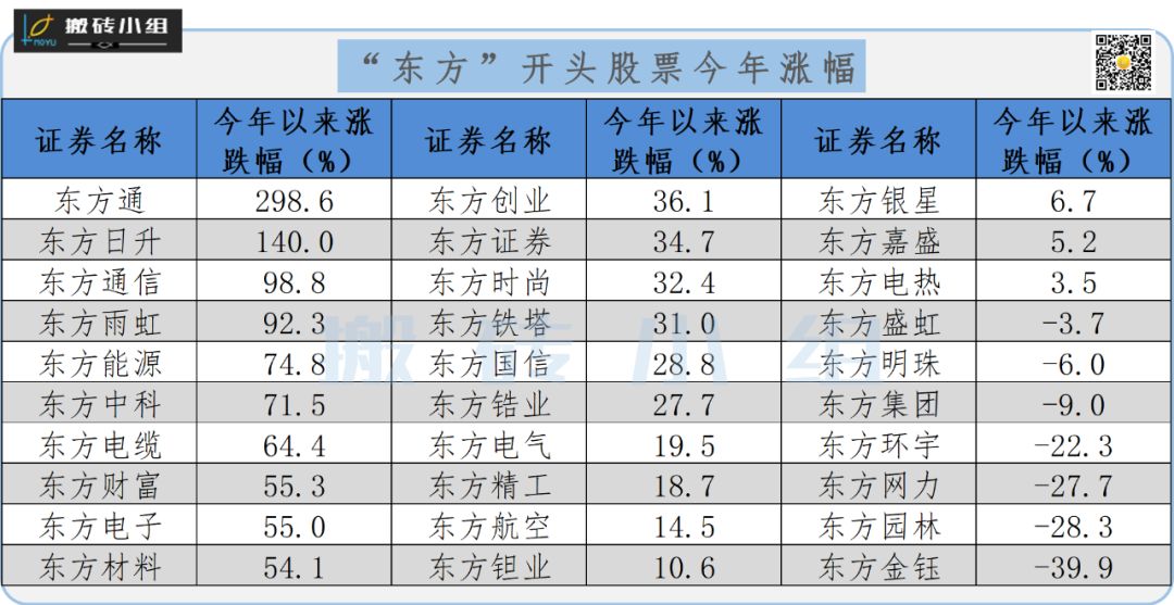 妖股之王又回来了。今天和昨天两天,大妖股东方通信以接近两天两板的成绩,宣告了市场行情的热烈程度。大A今年出现了一个很神奇的现象,股票简称里“东方”两个字开头的票,基本上涨得都不差,年内的加权平均涨幅更是超过40%!
