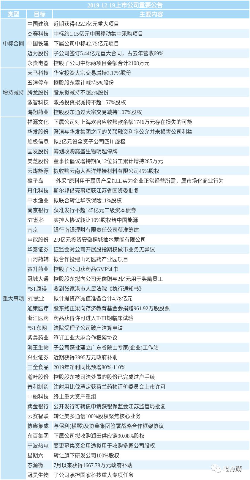 4、三全食品:昨晚披露2019年度业绩预告,预计2019年净利润为1.83亿元–2.14亿元,同比增长80%-110%。业绩较上年同期有所增长主要得益于传统零售市场的产品结构优化以及餐饮业务市场的渠道深耕。